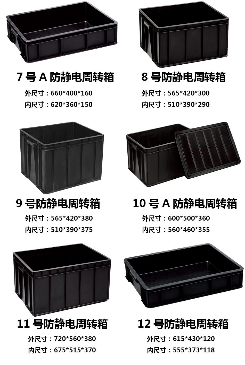 防靜電周轉(zhuǎn)箱也稱為防靜電膠箱、導(dǎo)電周轉(zhuǎn)箱,廣泛用于機(jī)械、汽車、家電、輕工、電子等行業(yè),能耐酸耐堿、耐油污,無毒無味,可用于盛放電子工業(yè)元件,清潔方便,零件周轉(zhuǎn)便捷、堆放整齊,便于管理。其合理的設(shè)計(jì),優(yōu)良的品質(zhì),適用于工廠物流中的運(yùn)輸、配送、儲(chǔ)存、流通加工等環(huán)節(jié)。