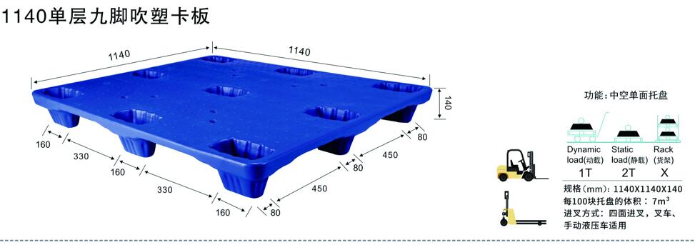 | 1140單層九腳吹塑卡板 | 1140*1140*140 |