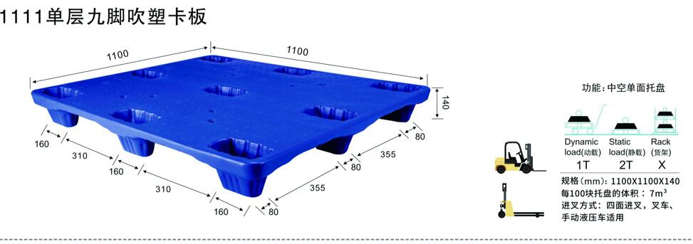 | 1111單層九腳吹塑卡板 | 1100*1100*140 |