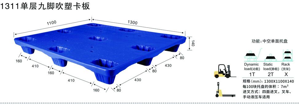 | 1311單層九腳吹塑卡板 | 1300*1100*140 |